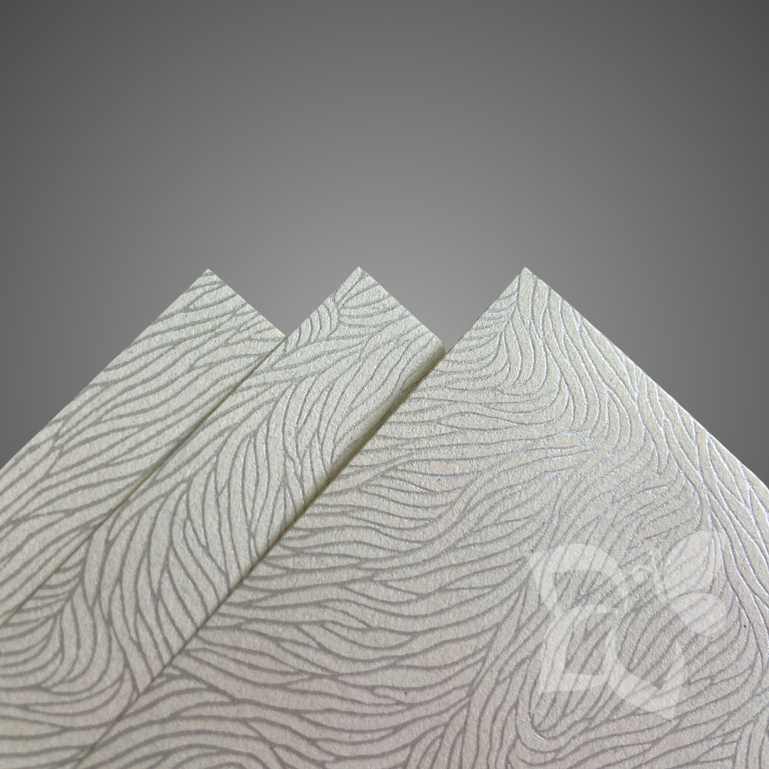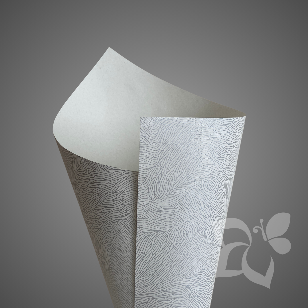 Questa variante presenta una base chiara impreziosita da raffinate onde argentate, che creano un effetto luminoso, materico e contemporaneo. Con la grammatura leggera da 120 g/m², garantisce flessibilità e ottima resa nelle lavorazioni, rendendola perfetta per rivestimenti, decorazioni e creazioni di pregio.